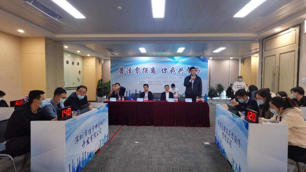 為提高轄區(qū)建筑企業(yè)的法律意識(shí),增強(qiáng)企業(yè)依法規(guī)范用工能力,近日,由廣東省深圳市福田區(qū)人力資源局、福田區(qū)住房和建設(shè)局主辦,福田區(qū)人力資源協(xié)會(huì)協(xié)辦的“普法零距離 你我共參與”法律知識(shí)競(jìng)賽在福田區(qū)保稅區(qū)聯(lián)合金融大廈舉行。
