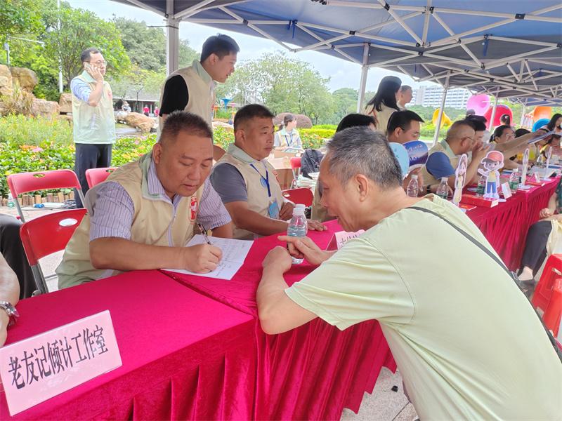 在活動現(xiàn)場,有一隊“志愿馬甲”格外亮眼,他們是來自廣東省信訪春雨志愿服務(wù)隊、廣州“穗信連心”志愿服務(wù)隊的信訪志愿者,以及來自大德、穗星、廣愛、普愛、北斗星等社工服務(wù)機(jī)構(gòu)的信訪社工。他們身著各自特色標(biāo)識服裝,在現(xiàn)場“擺攤設(shè)點”,面對面服務(wù)群眾,對有疑問的群眾提供現(xiàn)場咨詢,對有訴求的群眾幫助梳理訴求,以真誠溝通、真情服務(wù)換來群眾的滿意點贊。