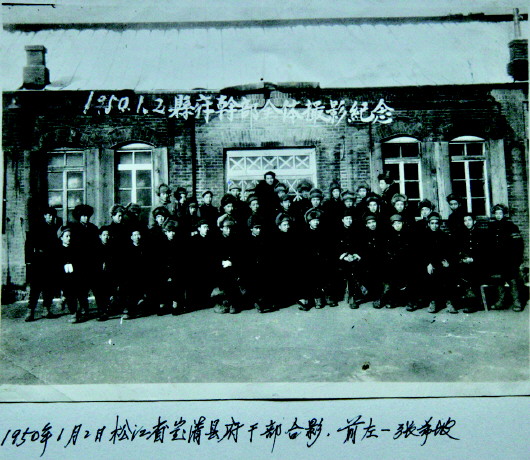 ▲ 圖為1950年1月2日松江省寶清縣府干部合影,前左一張希坡