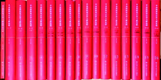 ▲ 圖為中國(guó)人民大學(xué)出版社出版張希坡教授的《革命根據(jù)地法律文獻(xiàn)選輯》,分為四輯16卷