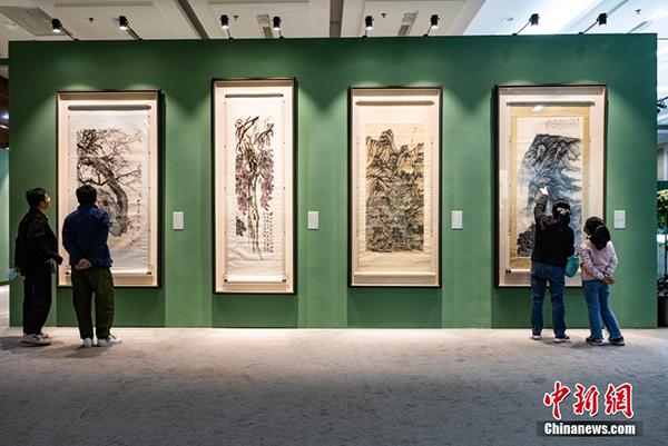4月13日,市民在北京榮寶齋欣賞在此舉辦的“南張北齊——張大千齊白石書(shū)畫(huà)藝術(shù)特展”。本次特展精選張大千與齊白石一生早、中、晚三個(gè)時(shí)期,近五十件(組)佳作,完整地涵蓋了兩位世紀(jì)巨匠各個(gè)時(shí)期的創(chuàng)作面貌。中新社記者 侯宇 攝