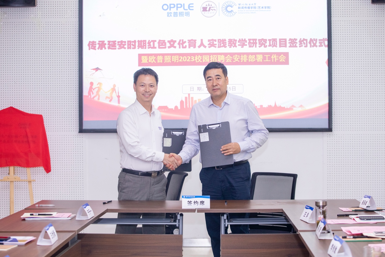 6月5日下午,“傳承延安時(shí)期紅色文化育人實(shí)踐教學(xué)研究項(xiàng)目簽約儀式暨陜公后人復(fù)唱《黃河大合唱》第二課堂實(shí)踐教學(xué)活動(dòng)”啟動(dòng)儀式在西北政法大學(xué)何微紀(jì)念館舉行。西北政法大學(xué)新聞傳播學(xué)院(藝術(shù)學(xué)院)與歐普照明股份有限公司就校企合作打造紅色文化知識(shí)體系和育人體系的合作框架與具體事項(xiàng)達(dá)成共識(shí),并決定啟動(dòng)“陜公后人復(fù)唱《黃河大合唱》”實(shí)踐教學(xué)活動(dòng)的籌備工作,探索“文化育人+藝術(shù)育人+實(shí)踐育人”三位一體的思政教育新模式。