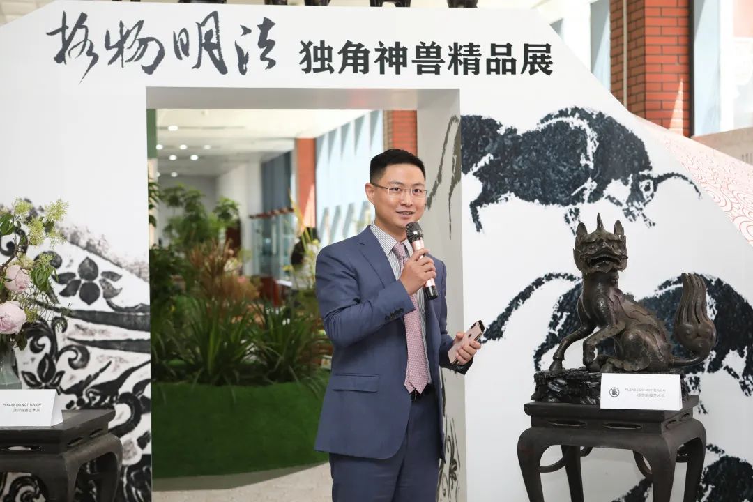 張曉東女士作為主辦方代表介紹了中國(guó)法學(xué)交流基金會(huì)蔣勇律師專項(xiàng)基金對(duì)傳統(tǒng)法治文化和青年法治人才成長(zhǎng)的關(guān)注與支持。本次展覽的絕大部分展品系張曉東女士的個(gè)人珍藏。她情真意切地分享了自己的收藏故事,講述鐘情于傳統(tǒng)文化賦予生活的美好意義。她表示本次展覽圓了自己兩個(gè)心愿:一是讓神獸從設(shè)在各地的天同律師事務(wù)所分所跨越千里首次匯集到北京,集合在蔣勇律師的母校中國(guó)政法大學(xué)。二是在北京服裝學(xué)院崔巖老師的幫助下復(fù)制出在歷史上流行的獬豸冠。未來,希望通過展覽等文化活動(dòng)的平臺(tái),將熱愛傳統(tǒng)文化的社會(huì)各界人士匯聚在一起,為優(yōu)秀傳統(tǒng)法律文化的發(fā)揚(yáng)光大貢獻(xiàn)一份力量。