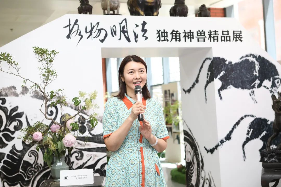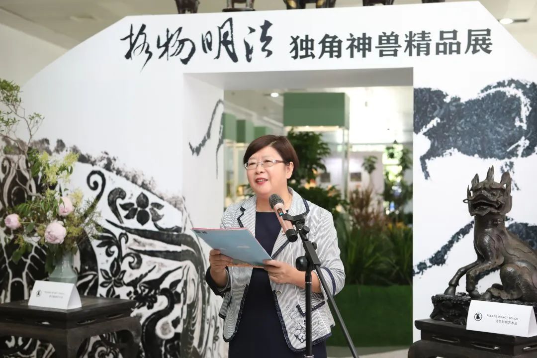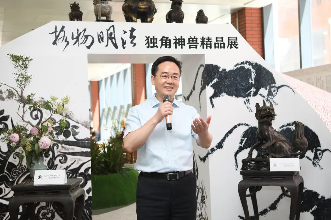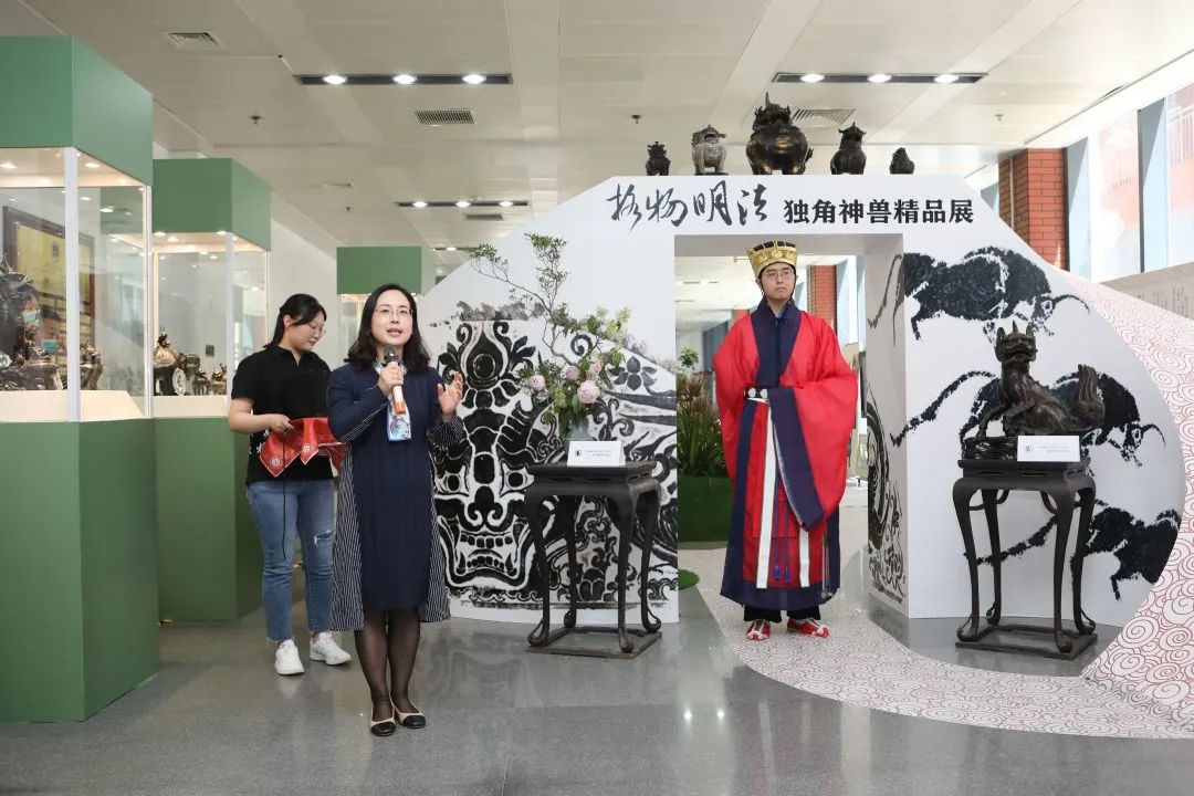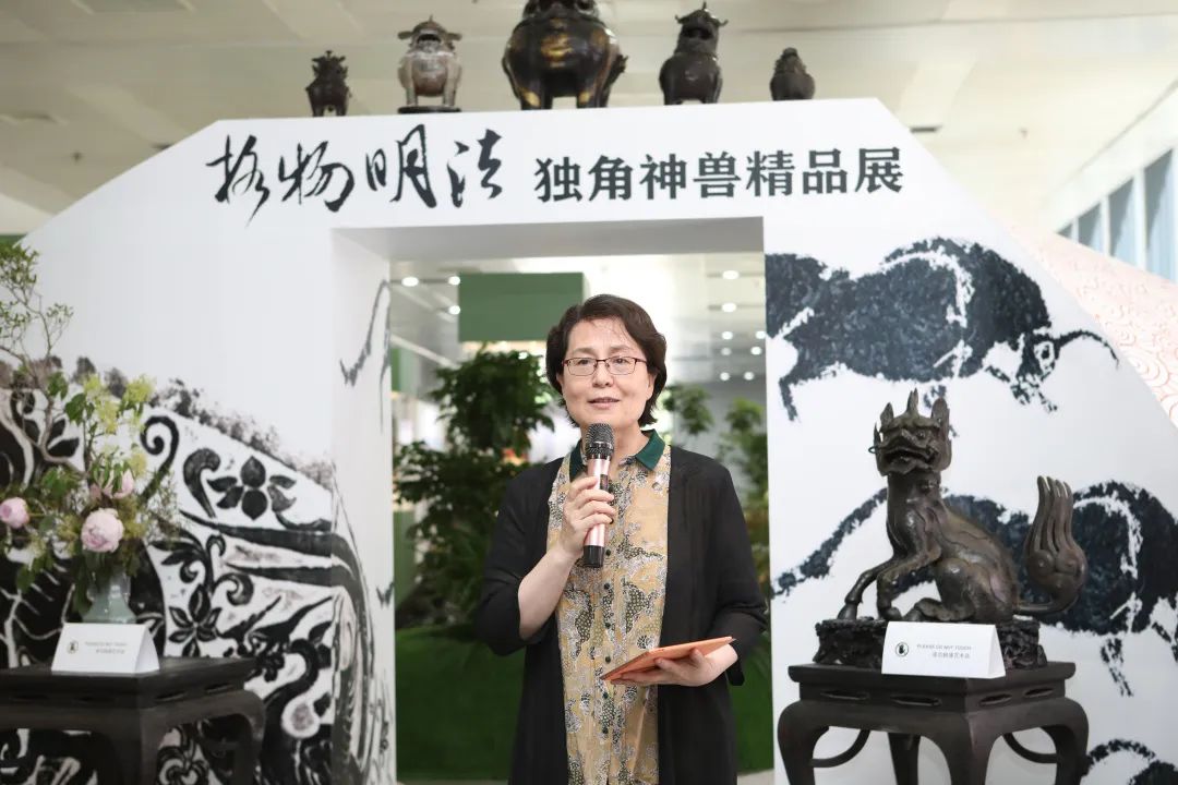 本次展覽的策展人、學(xué)術(shù)主持李雪梅教授向大家介紹了策展理念。中國(guó)有著源遠(yuǎn)流長(zhǎng)的獨(dú)角崇拜與祥瑞崇拜,創(chuàng)造了形制各異的獨(dú)角神獸,而其中與法律聯(lián)系最為緊密的就是獬豸。獬豸代表了公平正義的執(zhí)法理念,她希望從事法學(xué)教育和法律實(shí)務(wù)的人士及其后備軍心里駐有這只神獸,時(shí)刻提醒、鞭策自己。她介紹本次展覽有很多亮點(diǎn),最大的亮點(diǎn)是復(fù)制了獬豸冠并首次在高校校園中展示,體現(xiàn)了展覽的學(xué)術(shù)追求和育人意義;其次是將時(shí)間跨度2000余年、近百種的神獸匯聚一處,在國(guó)內(nèi)也尚屬首次;三是展覽設(shè)計(jì)以鳳凰形象為基調(diào)布置綠植花卉,配以鹿、鶴等標(biāo)本和雅致的音樂,營(yíng)造出神獸在花園中憩息的祥和景觀。展覽給觀眾提供了一個(gè)欣賞、探究和發(fā)現(xiàn)的場(chǎng)景,希望大家在觀賞中能找到自己心目中的那只理想的獬豸。