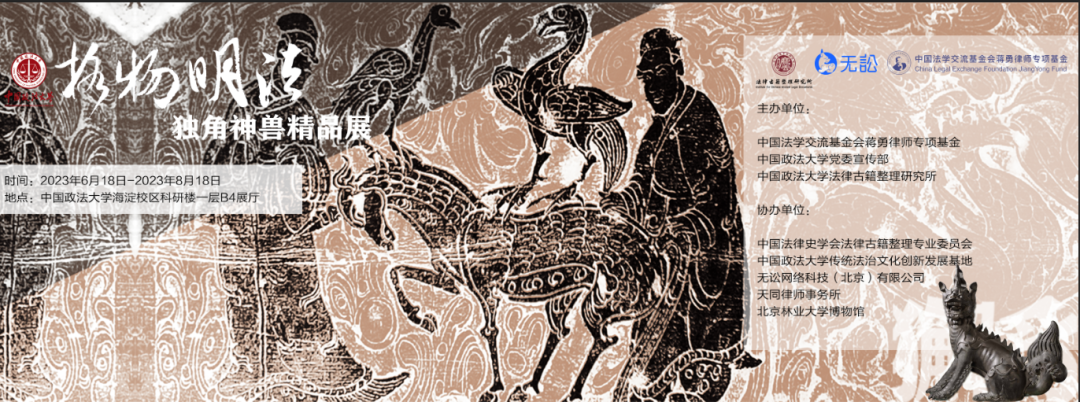 6月21日,“格物明法:獨(dú)角神獸精品展”開展式在中國(guó)政法大學(xué)海淀校區(qū)舉行。展覽由中國(guó)法學(xué)交流基金會(huì)蔣勇律師專項(xiàng)基金、中國(guó)政法大學(xué)黨委宣傳部、法律古籍整理研究所共同主辦,中國(guó)法律史學(xué)會(huì)法律古籍整理專業(yè)委員會(huì)、中國(guó)政法大學(xué)傳統(tǒng)法治文化創(chuàng)新發(fā)展基地、無訟網(wǎng)絡(luò)科技(北京)有限公司、天同律師事務(wù)所和北京林業(yè)大學(xué)博物館等單位協(xié)辦。