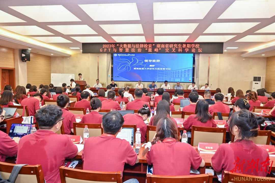 湖南師范大學(xué)研究生院黨委書記龔舒指出,本次暑期學(xué)校學(xué)員來源廣泛、課程豐富多樣,由北大法寶參與聯(lián)合承辦體現(xiàn)了校企合作協(xié)同育人和線上線下混合的特色,有利于推動(dòng)研究生教育優(yōu)質(zhì)資源共享。湖南師范大學(xué)法學(xué)院院長(zhǎng)肖北庚在致辭中表示,從去年開始堅(jiān)持舉辦“大數(shù)據(jù)與法律檢索”暑期學(xué)校,是為了讓更多學(xué)生能夠獲得優(yōu)質(zhì)教育資源,暑期學(xué)校從去年的線上走到今年的線下,離不開湖南省教育廳和北大法寶的大力支持。湖南師范大學(xué)交叉科學(xué)研究院院長(zhǎng)劉紅榮在致辭中指出,在“大數(shù)據(jù)與法律檢索”暑期學(xué)校第一天舉辦“GPT與智慧法治”交叉科學(xué)論壇是一次創(chuàng)新,也是一次文理交叉的學(xué)術(shù)盛宴。