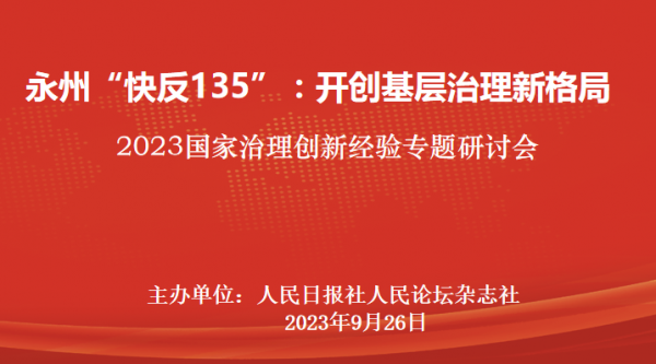 9月26日,“永州‘快反135’:開創(chuàng)基層治理新格局——2023國家治理創(chuàng)新經(jīng)驗專題研討會”在北京人民日報社新媒體大廈舉行。