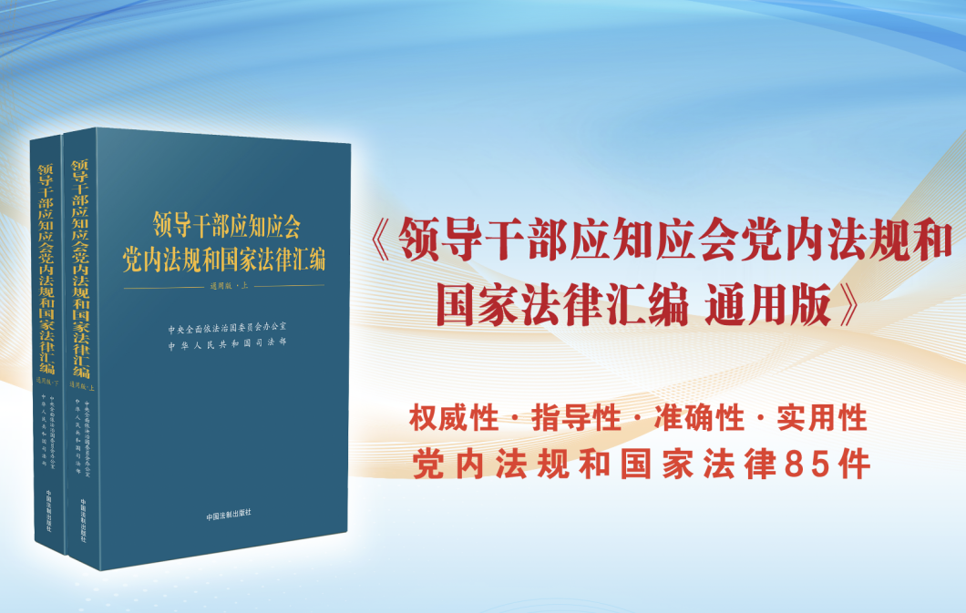 中央依法治國辦、司法部編輯的《領(lǐng)導(dǎo)干部應(yīng)知應(yīng)會黨內(nèi)法規(guī)和國家法律匯編 通用版》一書,近日由中國法制出版社公開出版發(fā)行。