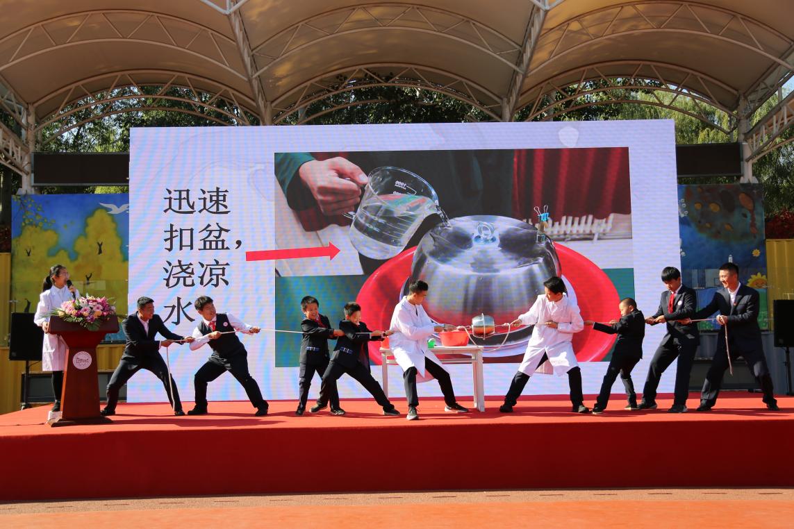 這場嘉年華啟動儀式上,中小學(xué)科技課程、科技戲劇、人工智能展演成為了焦點,從奮力沖上蒼穹的“水火箭”,到馬德堡半球?qū)嶒灥脑佻F(xiàn),再到機器人的舞蹈表演,每一個科學(xué)實驗都在孩子們歡喜的尖叫聲中揭開神秘面紗。參加科學(xué)實驗展演的孩子們個個眼光中充滿了自信和希望,沉著冷靜、默契配合,詮釋科學(xué)實驗、科學(xué)反應(yīng)、科學(xué)原理或科研創(chuàng)新成果及技術(shù)。