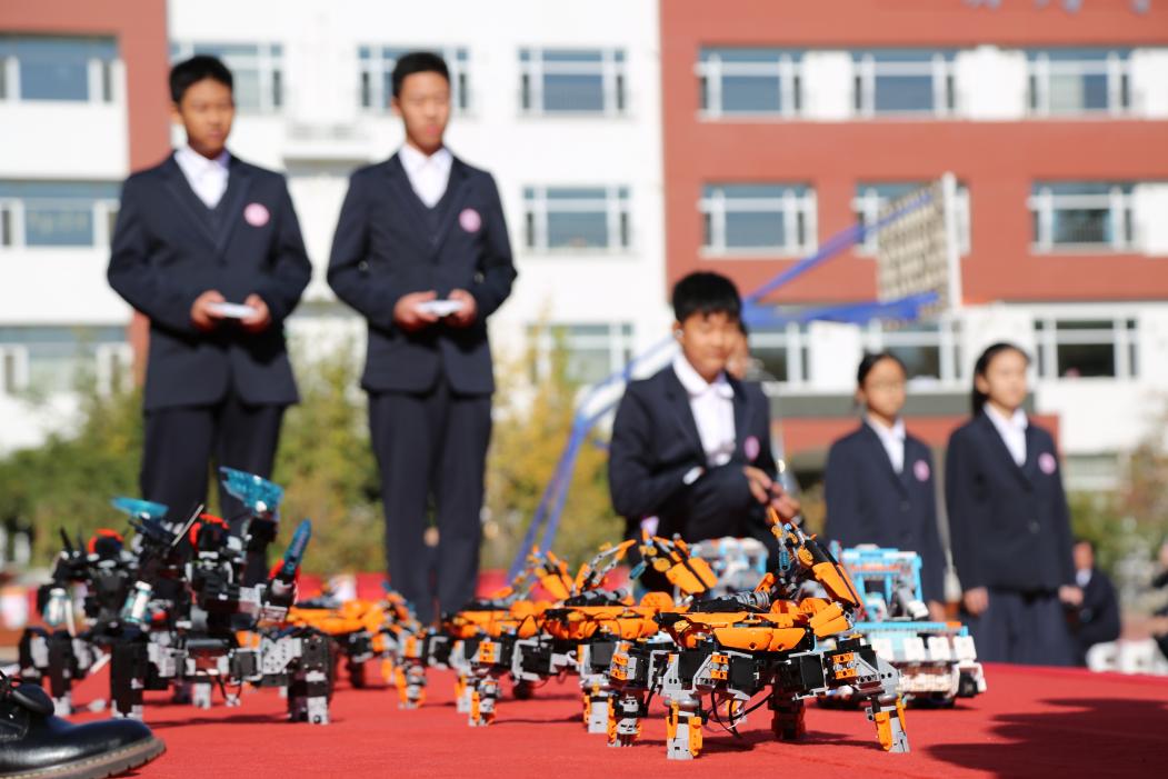 (將府學(xué)校人工智能社團學(xué)生進行機器人舞蹈展示)