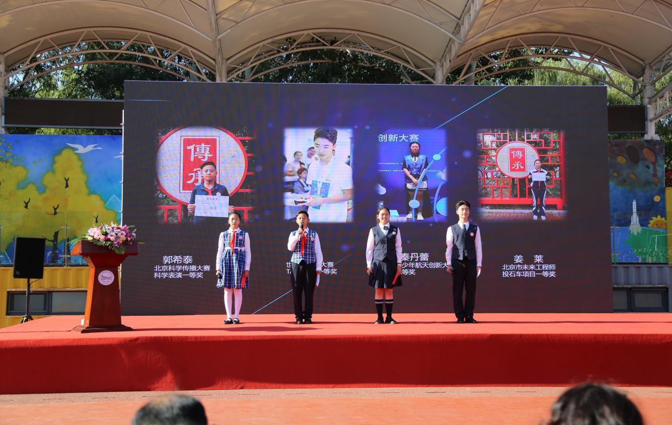 活動現(xiàn)場,分別獲得2021年第三屆北京科學(xué)傳播大賽中榮獲科學(xué)表演團體一等獎、2023年北京市未來工程師競賽小學(xué)組一等獎、2022年世界機器人大賽總決賽挑戰(zhàn)賽一等獎、2023全國青少年航天創(chuàng)新大賽二等獎的四名學(xué)生代表郭希泰、劉嘉樂、秦丹蕾、姜萊,分享了參加科技活動的經(jīng)歷與心得體會。“每周兩節(jié)的科學(xué)課點燃了我們的太空夢”“在一次次賽前集訓(xùn)中,通過老師帶領(lǐng)我們查找資料、研究原理、設(shè)計作品等動手實踐活動,我提高了綜合運用知識的能力和創(chuàng)造性解決問題的能力”“曾經(jīng)基礎(chǔ)科學(xué)知識薄弱的我,各種提問占用老師很多時間,老師卻總是表揚我虛心求教的態(tài)度”“在討論比賽項目時,我們在相互提問中碰撞思維的火花,我學(xué)會了如何傾聽、如何溝通”……學(xué)生們認為,他們科學(xué)興趣的激發(fā)、科學(xué)探究能力的提升、科技實踐能力的強化、科技探索之路的開啟,離不開學(xué)校豐富的科技教育課程、科技競賽平臺的搭建、老師的悉心教導(dǎo)與鼓勵、小組的合作探究。