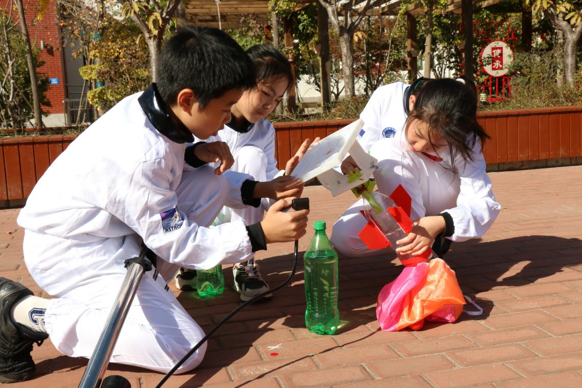 10月27日,一艘艘“水火箭”在北京市朝陽區(qū)將府實驗學(xué)校(以下簡稱將府學(xué)校)操場北側(cè)凌空飛起,孩子們的航天夢、科技夢也隨之起飛……