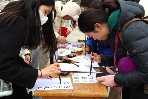 同一天,主題活動在清華大學(xué)學(xué)生服務(wù)中心前舉辦。活動通過限時背誦憲法名言、法律知識問答等游戲方式,向師生普及憲法,引導(dǎo)學(xué)習(xí)憲法。現(xiàn)場設(shè)計了“想點大事”“三行情書”“與法同行”“現(xiàn)身‘書法’”等活動,鼓勵師生們以筆書寫憲法意,以心感悟憲法情。現(xiàn)場還準(zhǔn)備了帶有宣傳法治內(nèi)容的小夜燈、筆記本、卡套、文件夾等文創(chuàng)獎品。