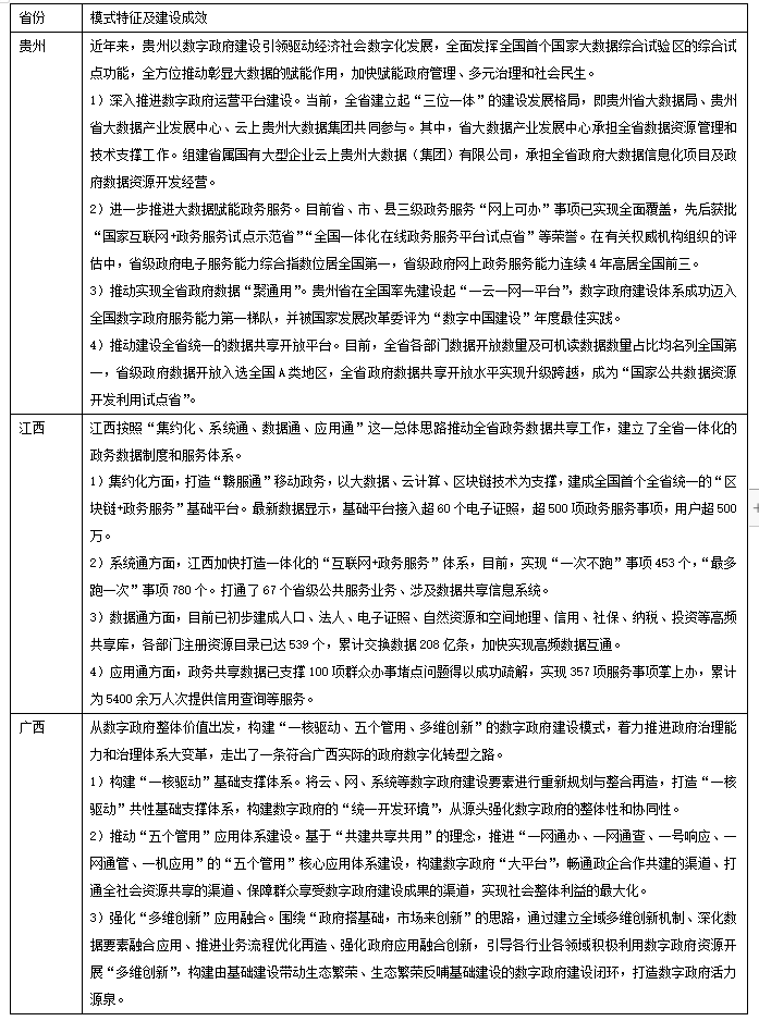 圖表8 特色賦能型部分省市數(shù)字政府建設模式及成果