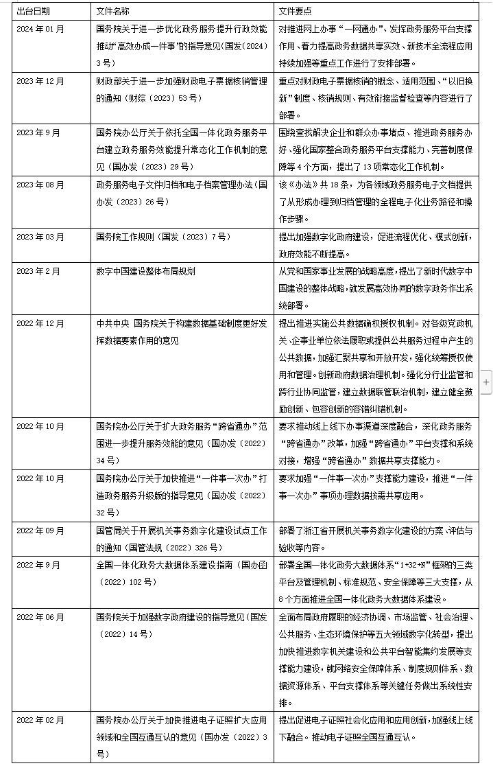 圖表1 黨中央、國務院近年來關于數(shù)字政府建設的重磅文件(數(shù)據(jù)來源:作者據(jù)中國政府網(wǎng)公開信息整理)