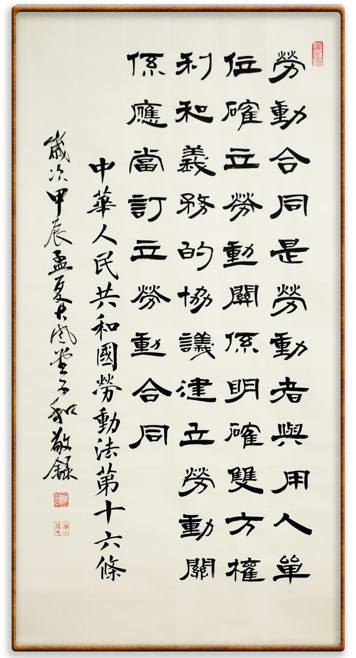 法律,是勞動(dòng)者奮斗前行的后盾。在“五一”國際勞動(dòng)節(jié)這個(gè)崇尚勞動(dòng)、贊美勞動(dòng)者的日子里,“書·法”系列活動(dòng)邀請書法家及書法愛好者們將筆端對(duì)準(zhǔn)《中華人民共和國勞動(dòng)法》,共同書寫新時(shí)代勞動(dòng)者新的榮光!