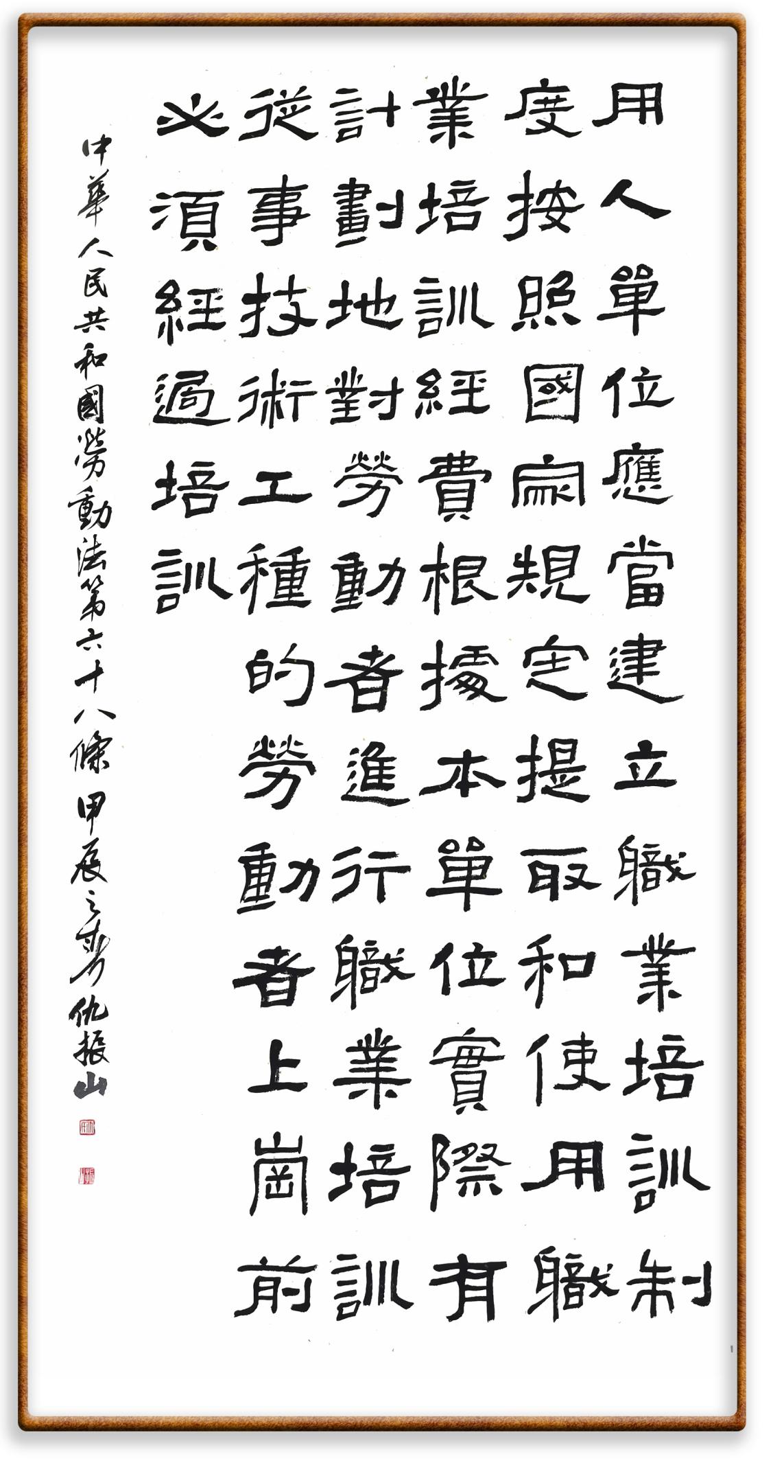法律,是勞動(dòng)者奮斗前行的后盾。在“五一”國(guó)際勞動(dòng)節(jié)這個(gè)崇尚勞動(dòng)、贊美勞動(dòng)者的日子里,“書(shū)·法”系列活動(dòng)邀請(qǐng)書(shū)法家及書(shū)法愛(ài)好者們將筆端對(duì)準(zhǔn)《中華人民共和國(guó)勞動(dòng)法》,共同書(shū)寫(xiě)新時(shí)代勞動(dòng)者新的榮光!