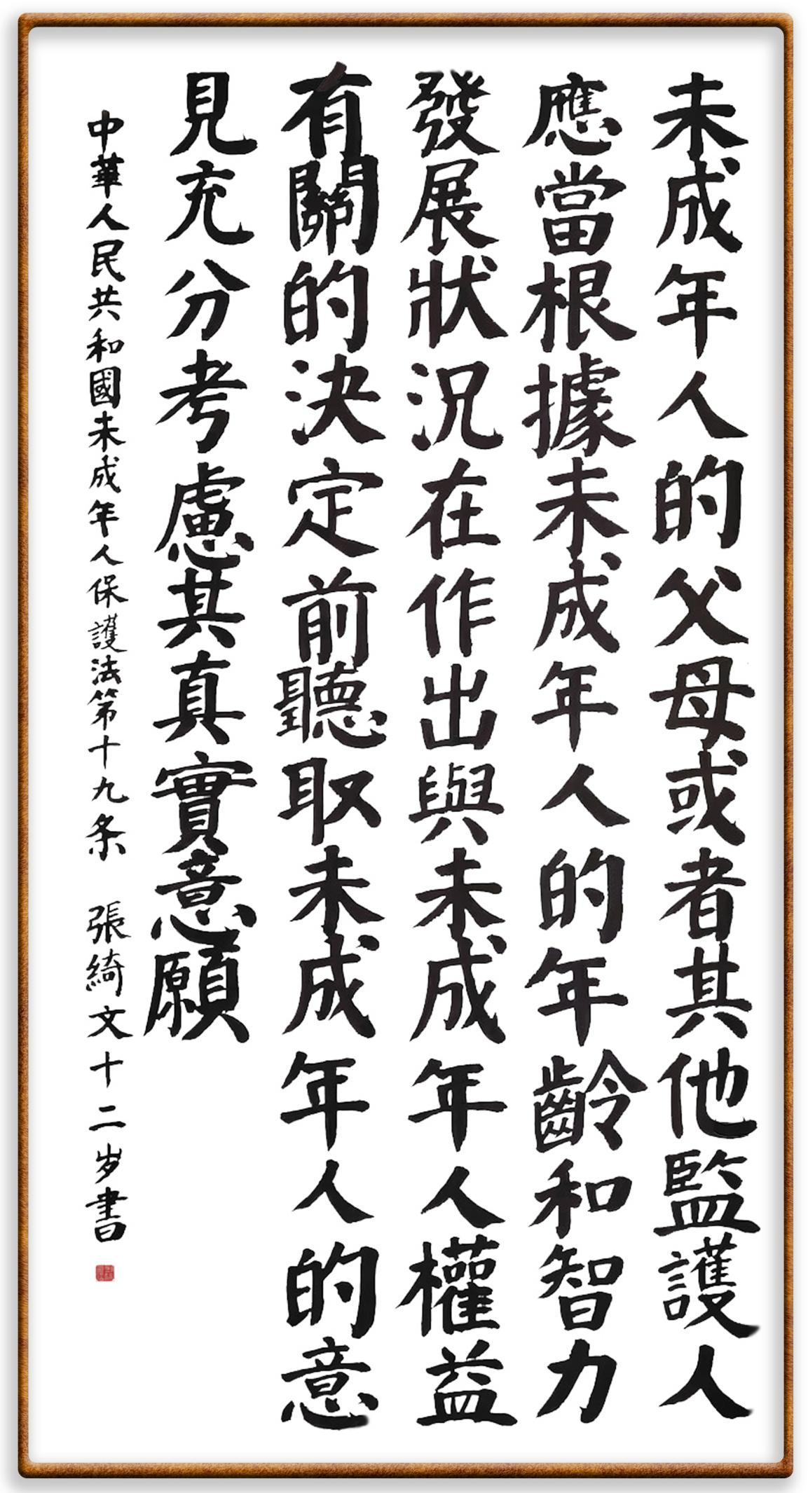 “六一”國(guó)際兒童節(jié)來臨之際,法制日?qǐng)?bào)社聯(lián)合(全國(guó))教育書畫協(xié)會(huì)基礎(chǔ)書法教育分會(huì),推出“‘書·法’系列活動(dòng)之書寫《中華人民共和國(guó)未成年人保護(hù)法》活動(dòng)”,邀請(qǐng)小朋友書寫部分法條,讓孩子們?cè)跐鉂獾墓?jié)日氛圍中感受傳統(tǒng)文化的獨(dú)特魅力。