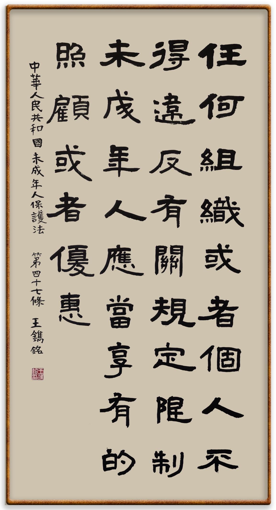 “六一”國際兒童節(jié)來臨之際,法制日報社聯(lián)合(全國)教育書畫協(xié)會基礎(chǔ)書法教育分會,推出“‘書·法’系列活動之書寫《中華人民共和國未成年人保護(hù)法》活動”,邀請小朋友書寫部分法條,讓孩子們在濃濃的節(jié)日氛圍中感受傳統(tǒng)文化的獨(dú)特魅力。