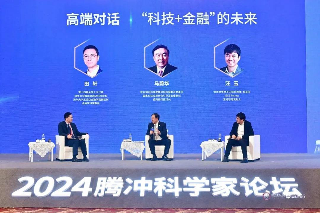 “‘科技+金融’的未來”高端對話環(huán)節(jié),第十四屆全國人大代表、清華大學國家金融研究院院長、清華大學五道口金融學院副院長、金融學講席教授田軒,聯(lián)合國可持續(xù)發(fā)展目標指導委員會委員、國家科技成果轉化引導基金理事長、招商銀行原行長馬蔚華,清華大學電子工程系教授、系主任,IEEE Fellow,無問芯穹發(fā)起人汪玉分別發(fā)表觀點。