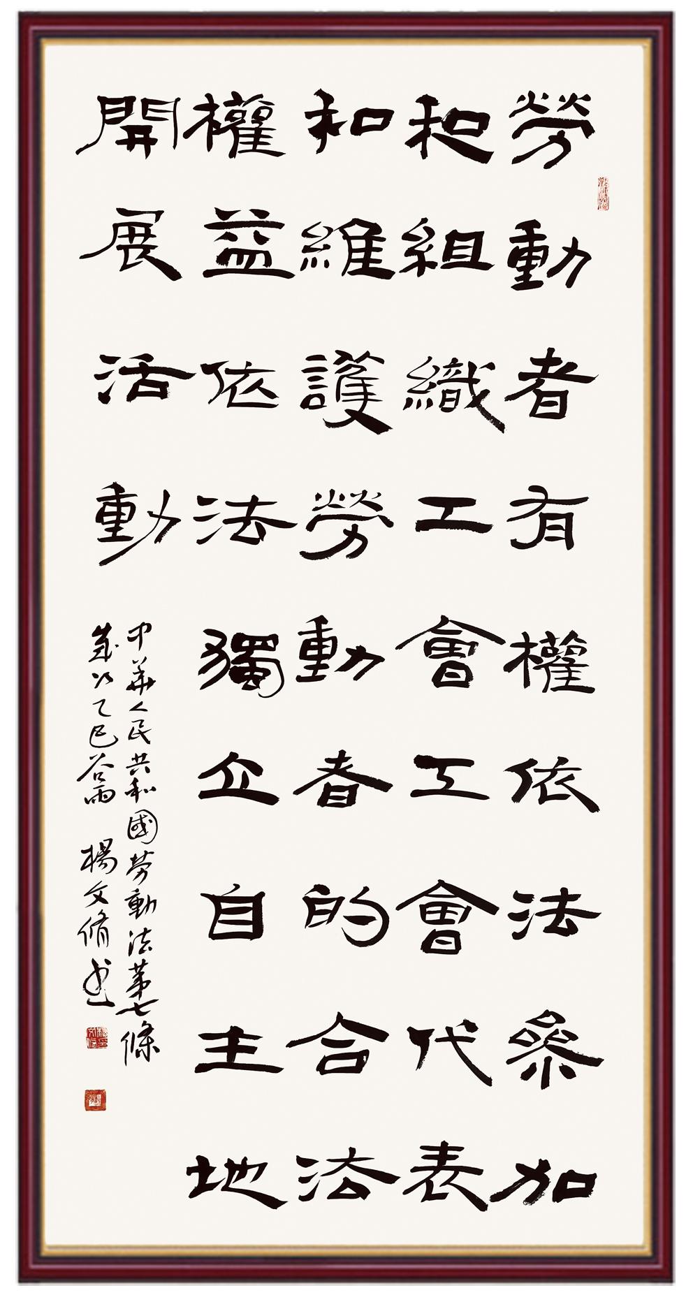法律,是勞動(dòng)者披荊斬棘的鎧甲;書法,是法治精神薪火相傳的載體。