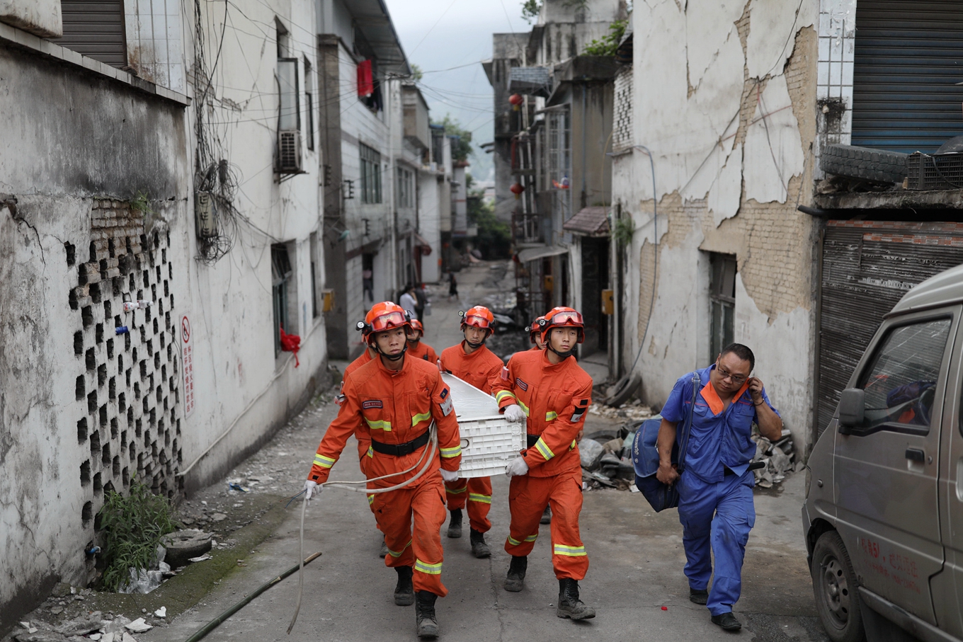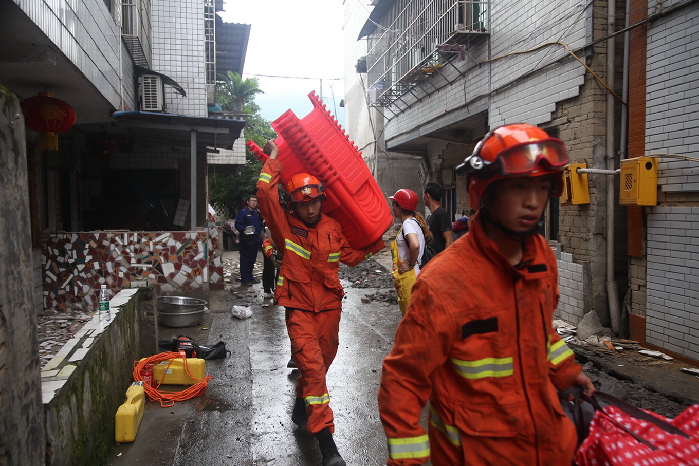 四川森林消防總隊副總隊長張宏偉介紹,在救援過程中,隊伍遇到約70次余震發(fā)生,其中最大的是5.3級,包括19日上午,隊伍正在危樓里搶救百姓物資時,突然發(fā)生3.5級左右的余震,當時救援人員正往下搬東西,很可能會有生命危險。針對余震不斷,救援人員做好自身防護措施的同時,盡最大努力搶救群眾物資財產(chǎn),做老百姓最信賴的人!