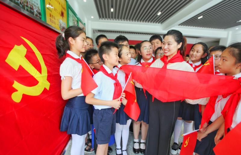 6月30日,江蘇省徐州市民主實(shí)驗學(xué)校少先隊蒲公英中隊開展“紅領(lǐng)巾心向黨”主題隊會,通過講黨史、唱歌曲、快板書等多種形式,培養(yǎng)少先隊員傳承紅色基因和從小熱愛黨、熱愛祖國的思想感情,喜迎黨的生日。