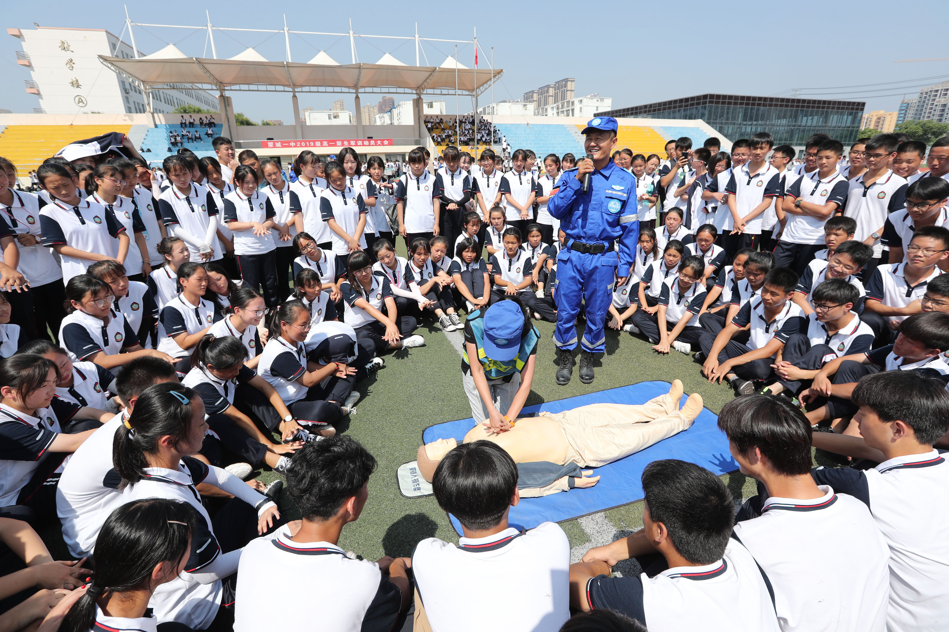 當(dāng)天,安徽省蒙城縣第一中學(xué)邀請(qǐng)縣藍(lán)天救援隊(duì)的志愿者,為參加軍訓(xùn)的高一年級(jí)新生開展防溺水及安全知識(shí)宣傳,向新同學(xué)傳授心腹復(fù)蘇急救技能,并通過案例講解、救援裝備展示以及現(xiàn)場(chǎng)互動(dòng)等,教育廣大新生學(xué)期開學(xué)要時(shí)刻牢記安全,珍愛生命。