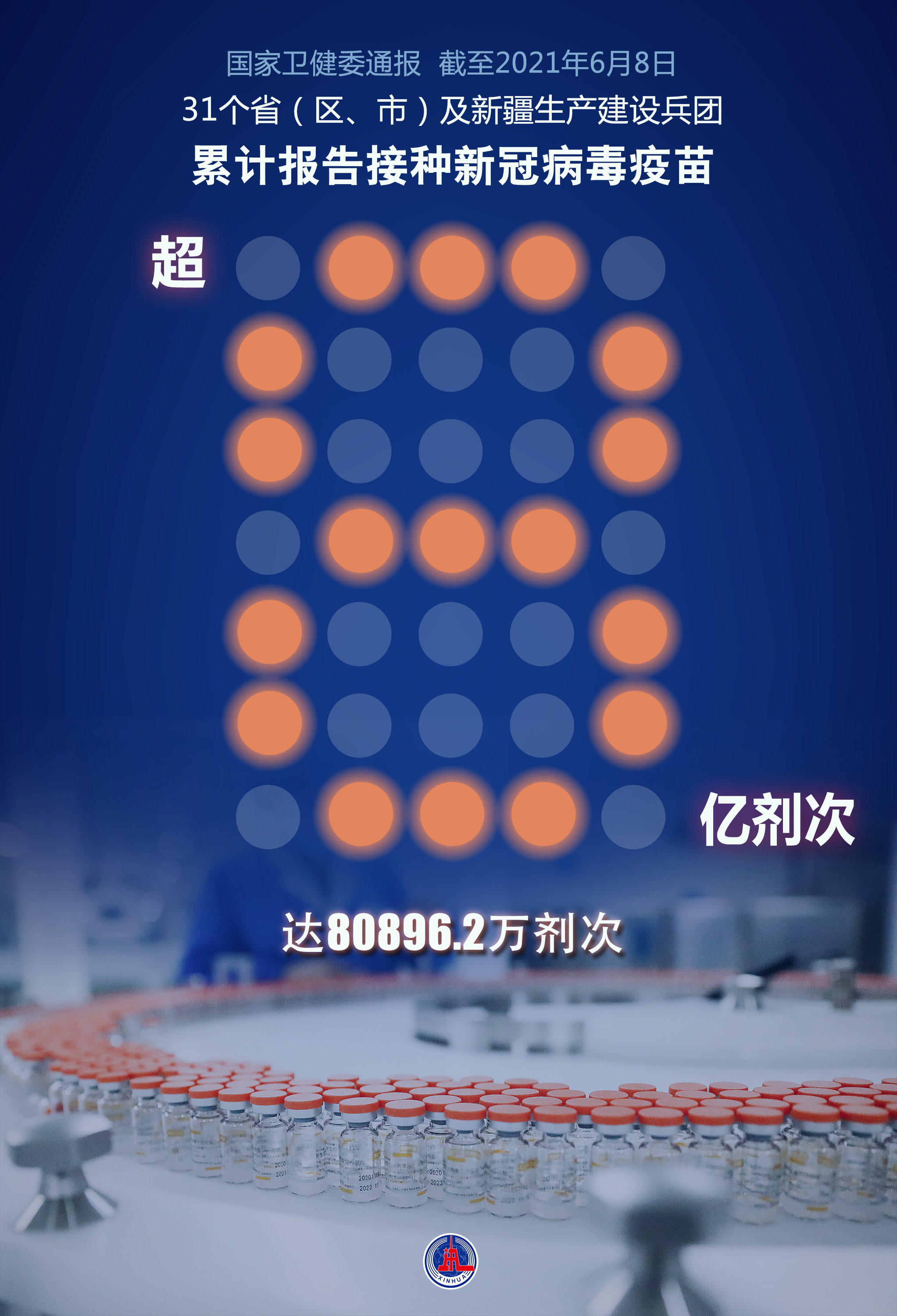 海報(bào):31個(gè)?。▍^(qū)、市)及新疆生產(chǎn)建設(shè)兵團(tuán)累計(jì)報(bào)告接種新冠病毒疫苗超8億劑次
