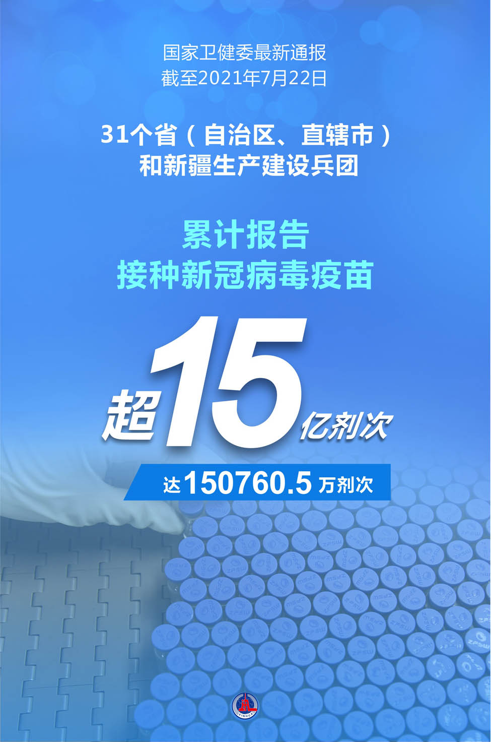 海報:31個省(自治區(qū)、直轄市)和新疆生產(chǎn)建設(shè)兵團(tuán)累計報告接種新冠病毒疫苗超15億劑次