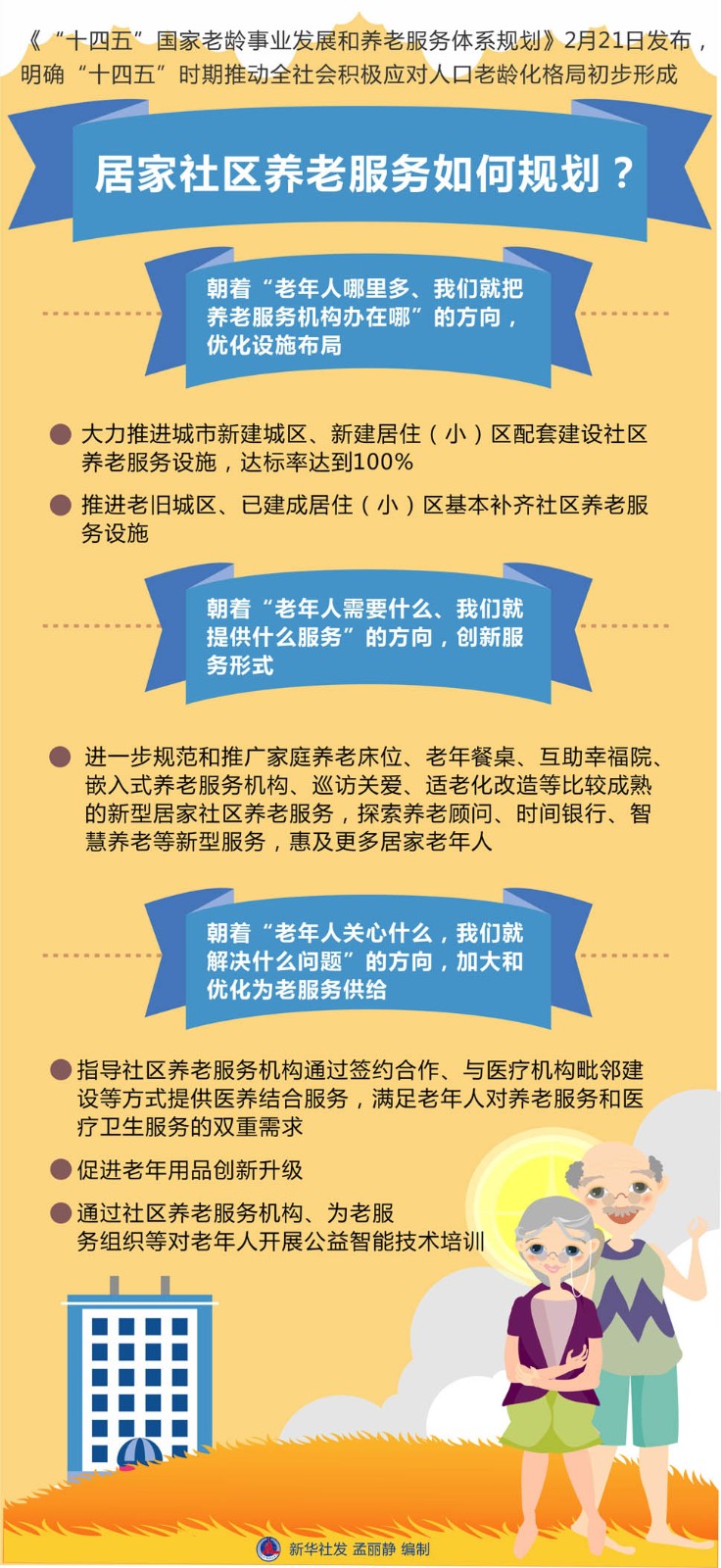 《“十四五”國家老齡事業(yè)發(fā)展和養(yǎng)老服務體系規(guī)劃》2月21日發(fā)布,明確“十四五”時期推動全社會積極應對人口老齡化格局初步形成。圍繞相關熱點問題,國家發(fā)展改革委、民政部、國家衛(wèi)生健康委、國家醫(yī)保局等部門有關負責同志回答了記者提問。將從三方面推動居家和社區(qū)養(yǎng)老服務進入高質量發(fā)展“2.0”版本。