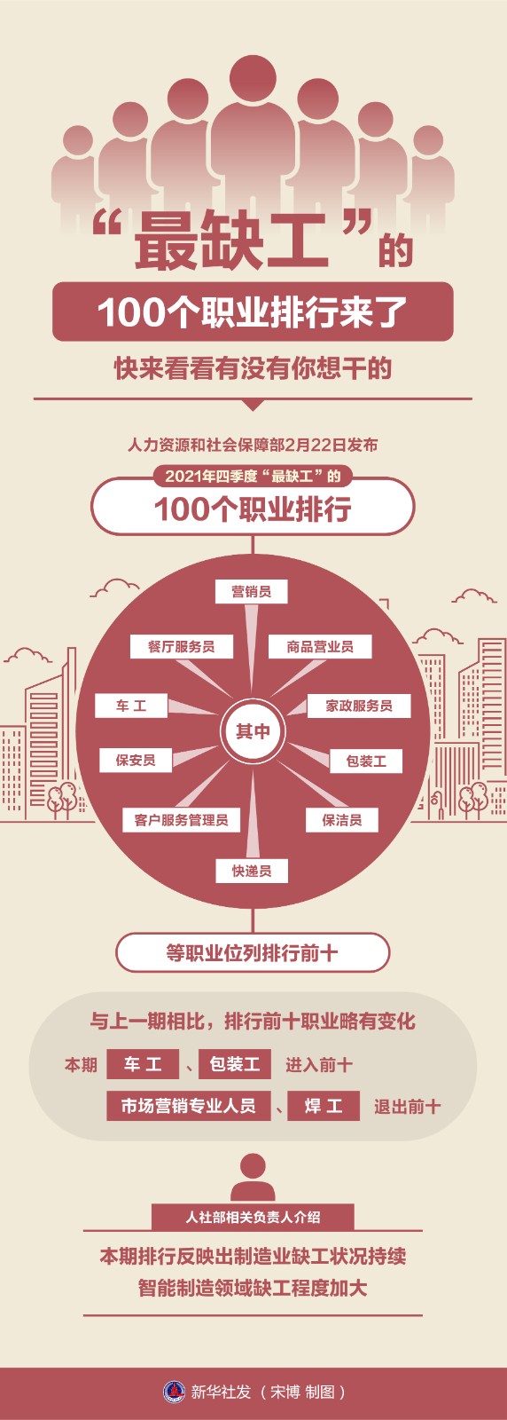 圖表:“最缺工”的100個(gè)職業(yè)排行來(lái)了,快來(lái)看看有沒(méi)有你想干的