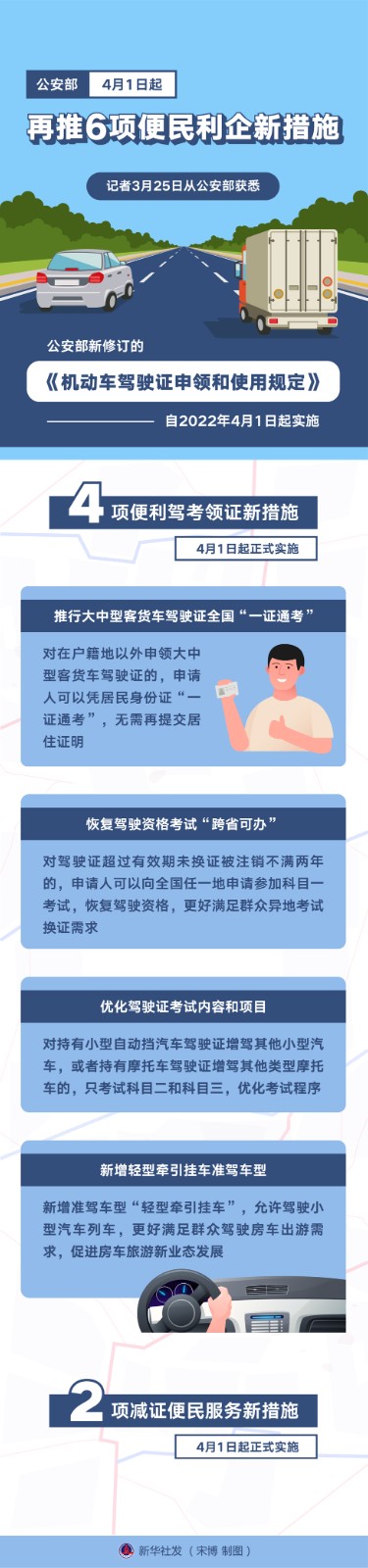 新華社記者3月25日從公安部獲悉,公安部新修訂的《機(jī)動(dòng)車駕駛證申領(lǐng)和使用規(guī)定》自2022年4月1日起實(shí)施。新修訂的部門(mén)規(guī)章對(duì)公安部近年來(lái)已推出的交管改革措施予以固化,推進(jìn)改革成果制度化、法治化,并回應(yīng)群眾新要求新期待,再推出6項(xiàng)便民利企新措施。