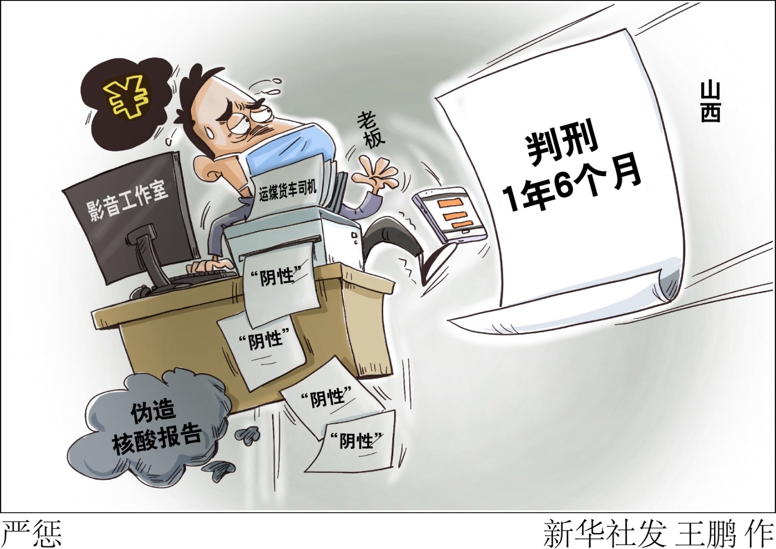 山西省檢察院日前發(fā)布第一批山西檢察機(jī)關(guān)依法辦理涉新冠肺炎疫情典型案例。其中一名影音工作室老板為252名運(yùn)煤貨車司機(jī)偽造核酸檢測報告621份,獲刑1年6個月。