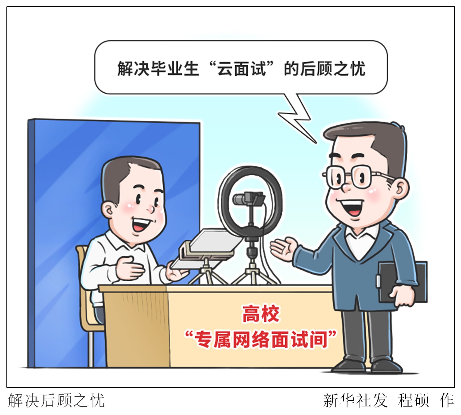 受疫情影響,“云面試”成為用人單位招聘、考研復(fù)試的重要方式。記者近日在福建、湖南、四川等地了解到,許多高校積極挖掘資源,打造“專(zhuān)屬網(wǎng)絡(luò)面試間”,解決畢業(yè)生“云面試”的后顧之憂。