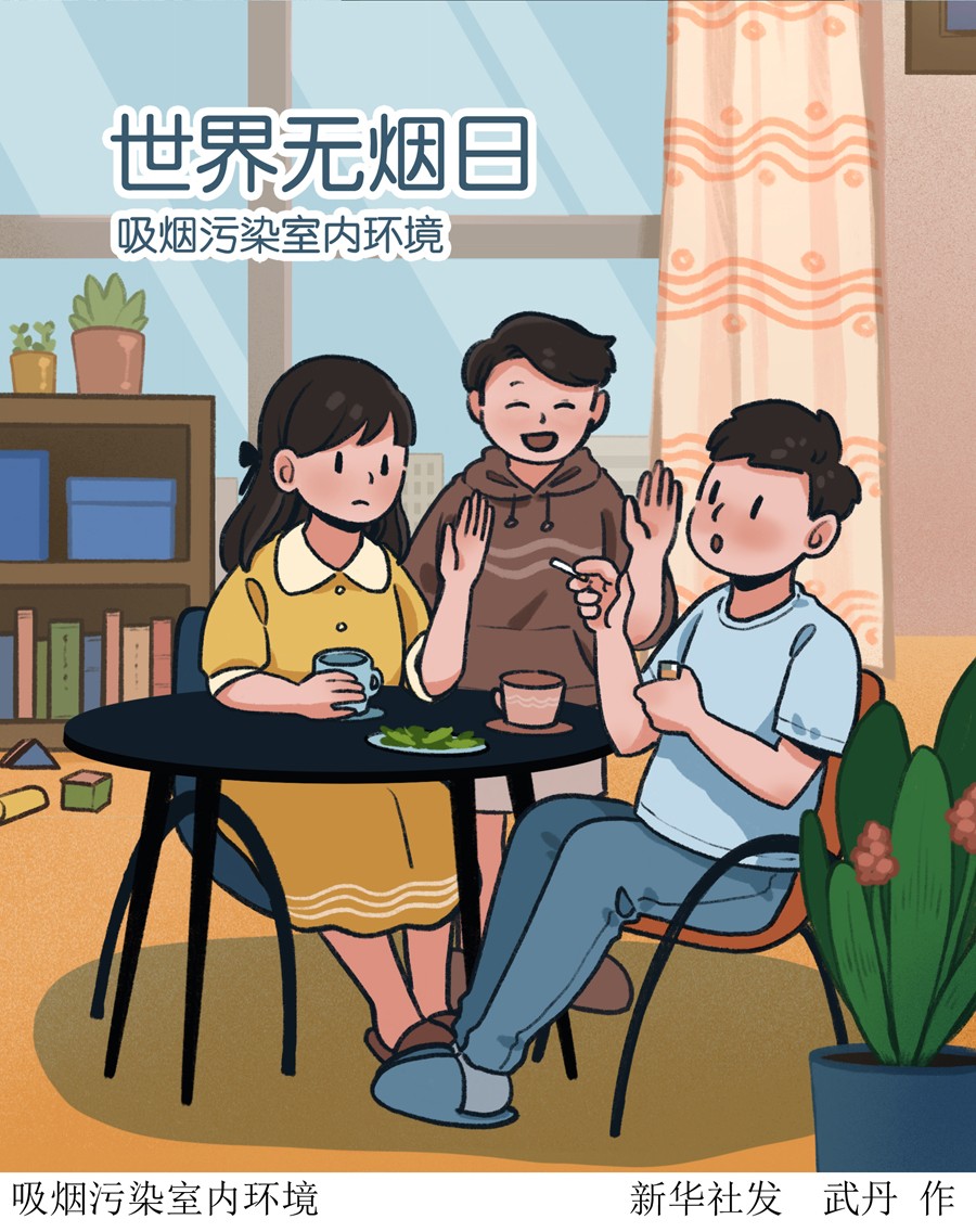 插畫:吸煙污染室內(nèi)環(huán)境