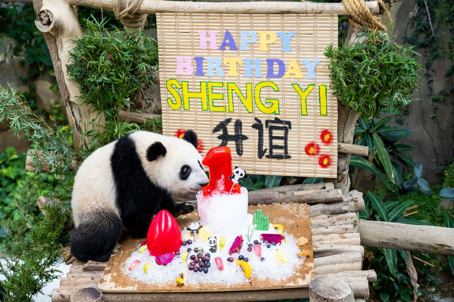 當日,在馬來西亞出生的大熊貓寶寶“升誼”在馬來西亞國家動物園慶祝一歲生日?!吧x”是中國旅馬大熊貓“興興”和“靚靚”生下的第三只寶寶,出生于2021年5月31日中馬建交47周年紀念日當天。