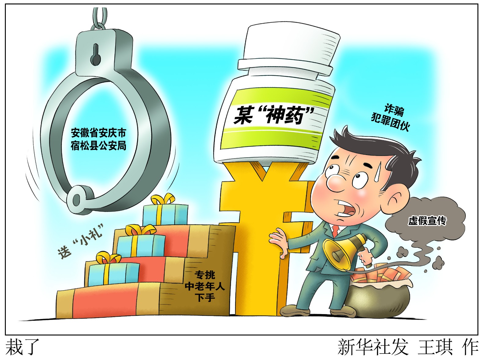 評書機、老人鞋等“小禮”請先笑納,“包治百病”的“神藥”快來試試?小心“騙你沒商量”!記者日前從安徽省安慶市宿松縣公安局了解到,當?shù)鼐酱虻粢粋€向中老年群體虛假宣傳兜售藥品進行詐騙的犯罪團伙,全國多地數(shù)千人上當,涉案金額近千萬元。