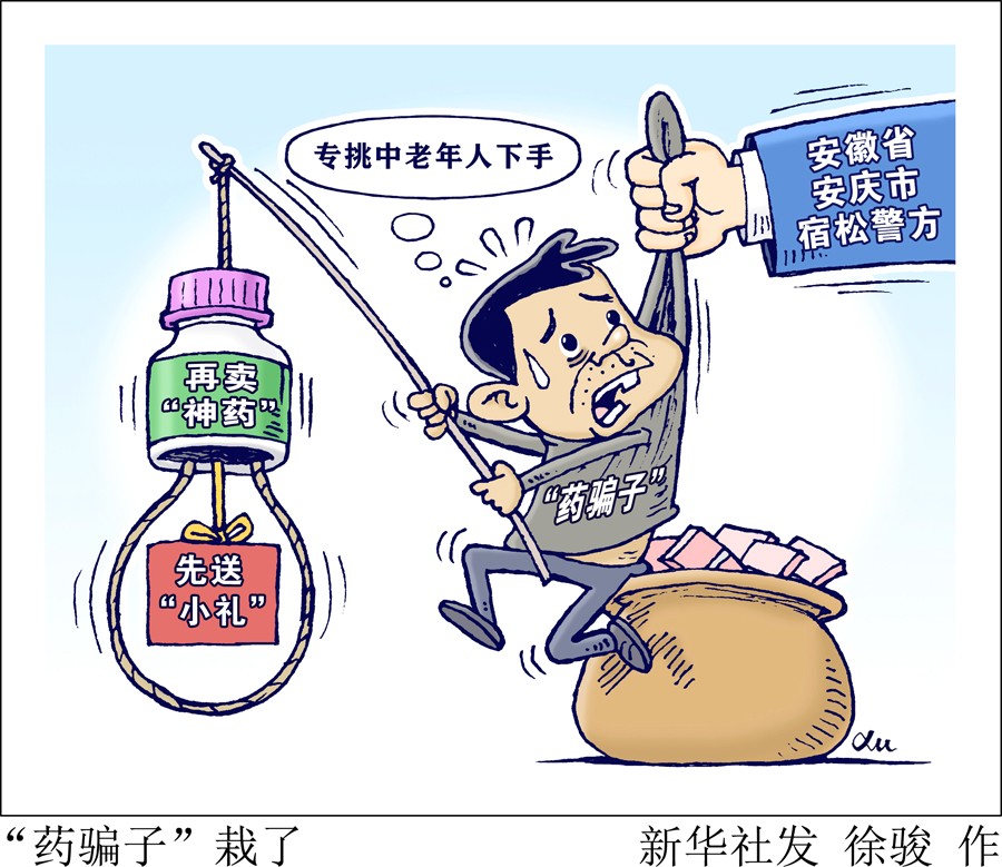 評(píng)書(shū)機(jī)、老人鞋等“小禮”請(qǐng)先笑納,“包治百病”的“神藥”快來(lái)試試?小心“騙你沒(méi)商量”!記者日前從安徽省安慶市宿松縣公安局了解到,當(dāng)?shù)鼐酱虻粢粋€(gè)向中老年群體虛假宣傳兜售藥品進(jìn)行詐騙的犯罪團(tuán)伙,全國(guó)多地?cái)?shù)千人上當(dāng),涉案金額近千萬(wàn)元。