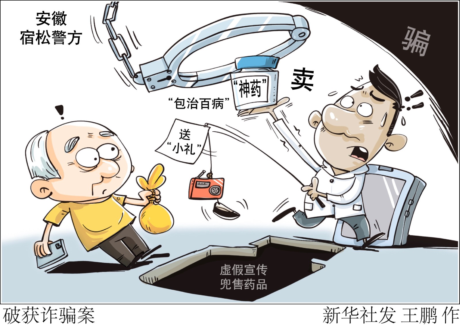 評書機、老人鞋等“小禮”請先笑納,“包治百病”的“神藥”快來試試?小心“騙你沒商量”!記者日前從安徽省安慶市宿松縣公安局了解到,當(dāng)?shù)鼐酱虻粢粋€向中老年群體虛假宣傳兜售藥品進行詐騙的犯罪團伙,全國多地數(shù)千人上當(dāng),涉案金額近千萬元。