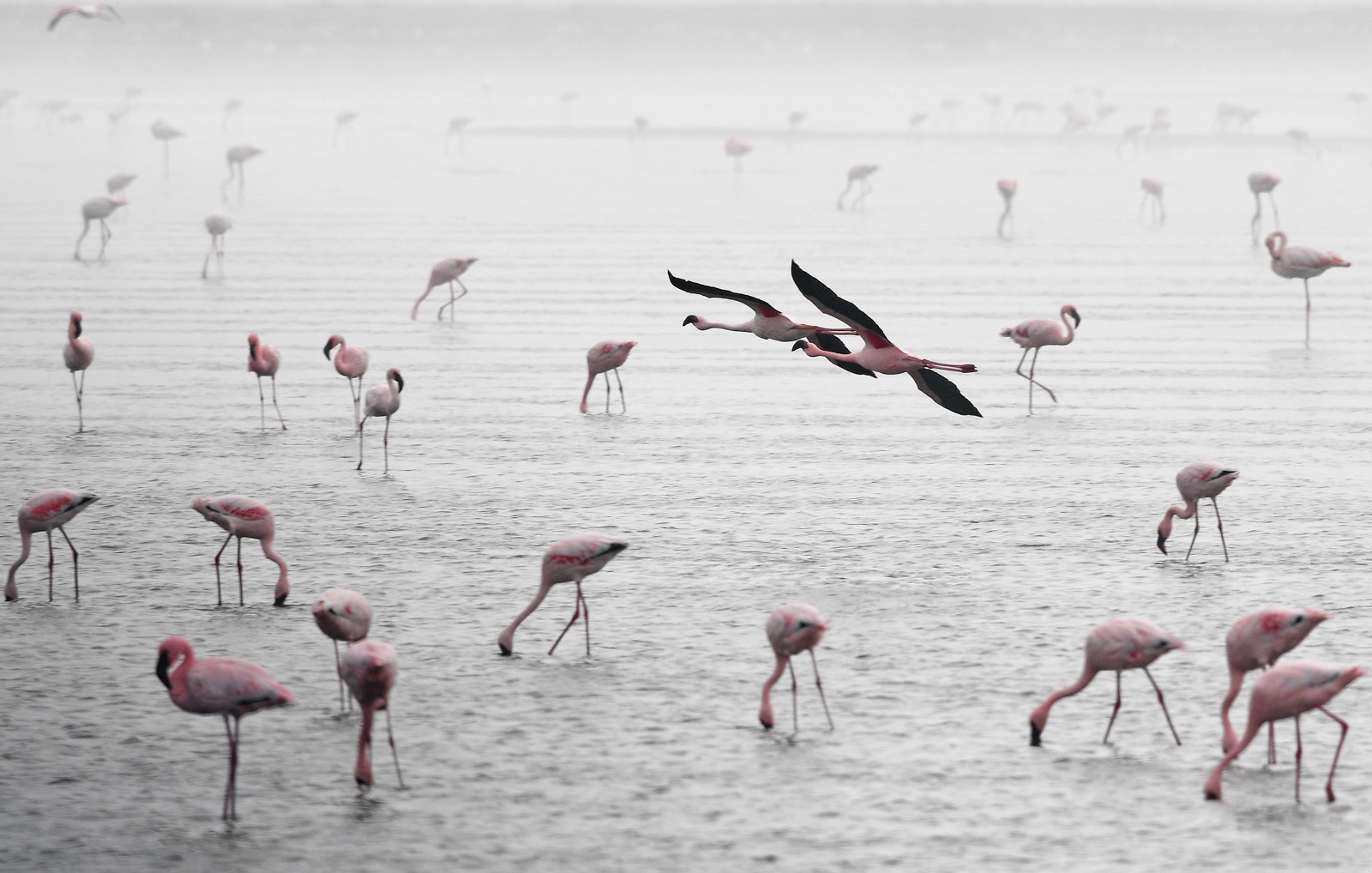 在距離納米比亞首都溫得和克400公里的沃爾維斯灣,生活著上萬(wàn)只火烈鳥(niǎo),它們常年都在附近覓食,成為了當(dāng)?shù)氐穆糜蚊?,吸引著世界各地的游客?/p>
