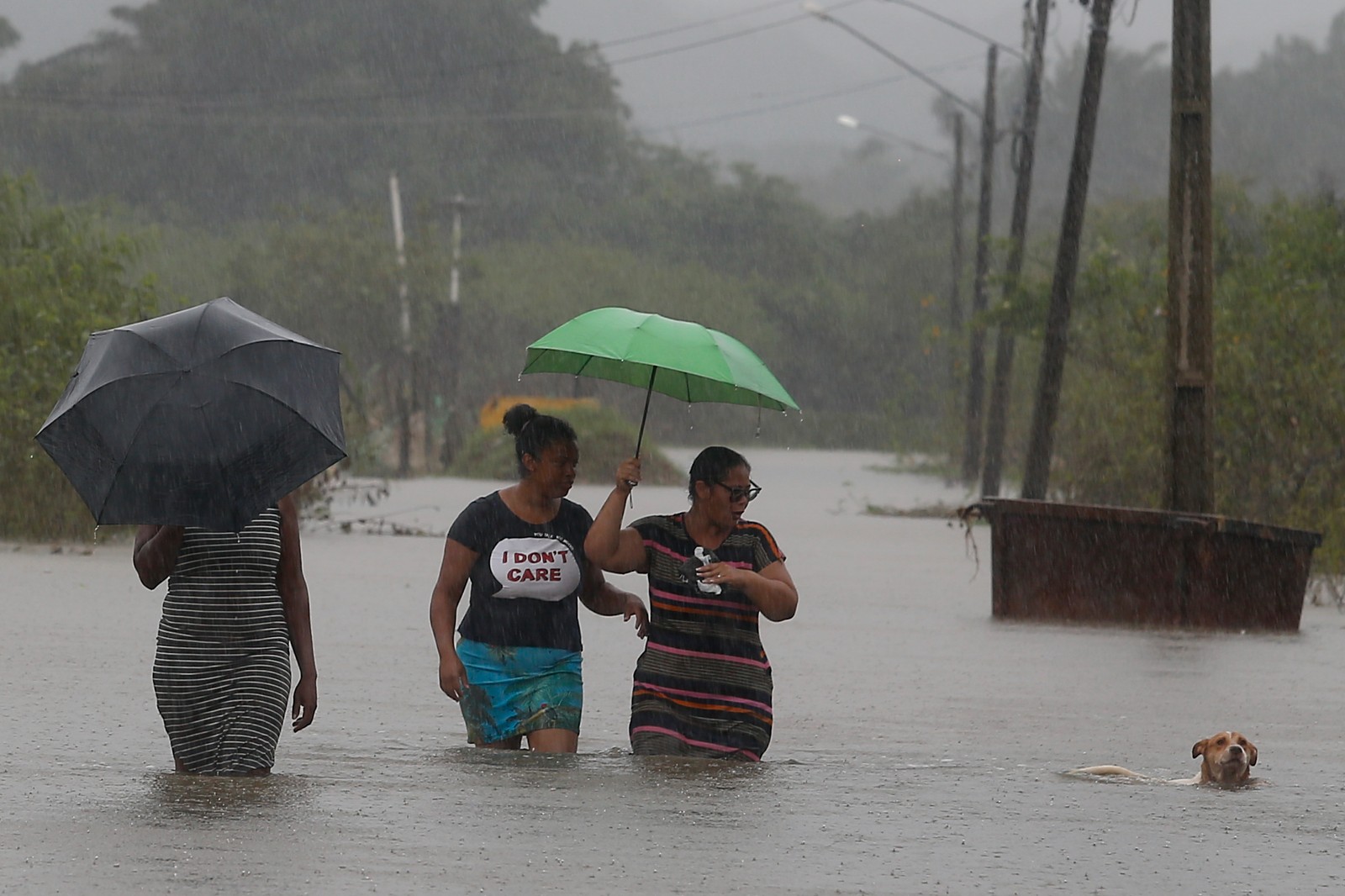 6月4日,人們走在巴西累西腓大都市區(qū)穆里貝卡鎮(zhèn)被洪水淹沒的街道上。