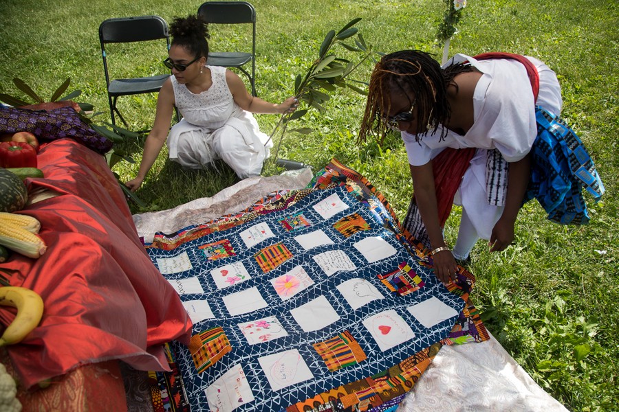 6月19日是美國的六月節(jié),也是紀念和慶祝美國黑人奴隸獲得解放的日子。在紐約展望公園六月節(jié)慶祝活動現場的一個臨時帳篷里,一場悼念新冠逝者的拼布活動,氣氛肅穆,與周圍歡樂的氣氛顯得有些格格不入。拼布作品由許多小方塊織物縫合而成,每塊織物代表了活動參加者對死于新冠的親人的思念和追憶。活動組織方鼓勵更多人帶來逝去親人曾穿過衣物的布片,以便縫制一塊更大的拼布。