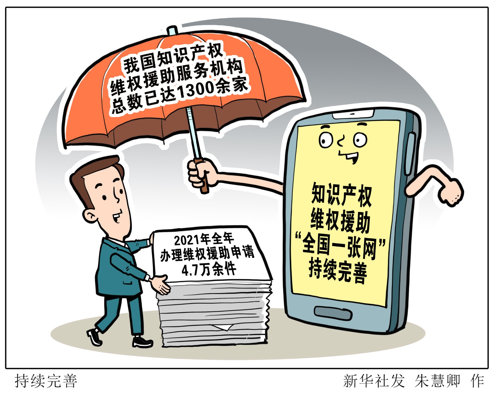 知識產(chǎn)權(quán)維權(quán)援助是知識產(chǎn)權(quán)公共服務(wù)的重要一環(huán)。國家知識產(chǎn)權(quán)局近日發(fā)布了《2021年全國知識產(chǎn)權(quán)維權(quán)援助工作進展報告》。報告顯示,我國知識產(chǎn)權(quán)維權(quán)援助服務(wù)機構(gòu)總數(shù)已達1300余家,2021年全年辦理維權(quán)援助申請4.7萬余件,知識產(chǎn)權(quán)維權(quán)援助“全國一張網(wǎng)”持續(xù)完善。