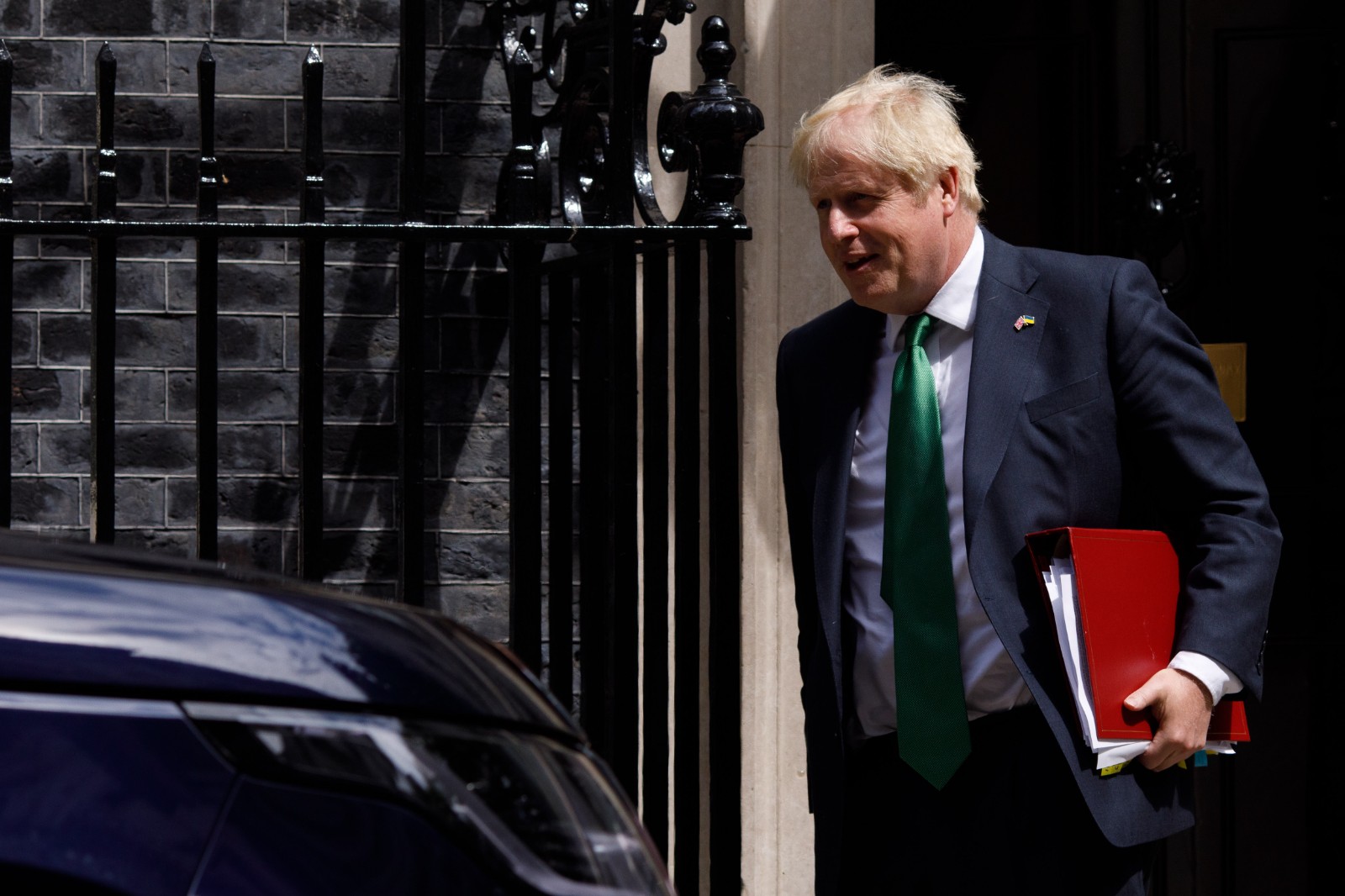 7月13日,在英國(guó)倫敦,鮑里斯·約翰遜離開唐寧街10號(hào)首相府,準(zhǔn)備前往議會(huì)進(jìn)行首相問答。