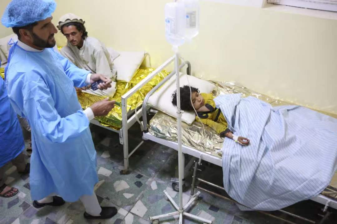 6月22日,一名地震中受傷的小女孩在阿富汗帕克提卡省醫(yī)院里接受救治。