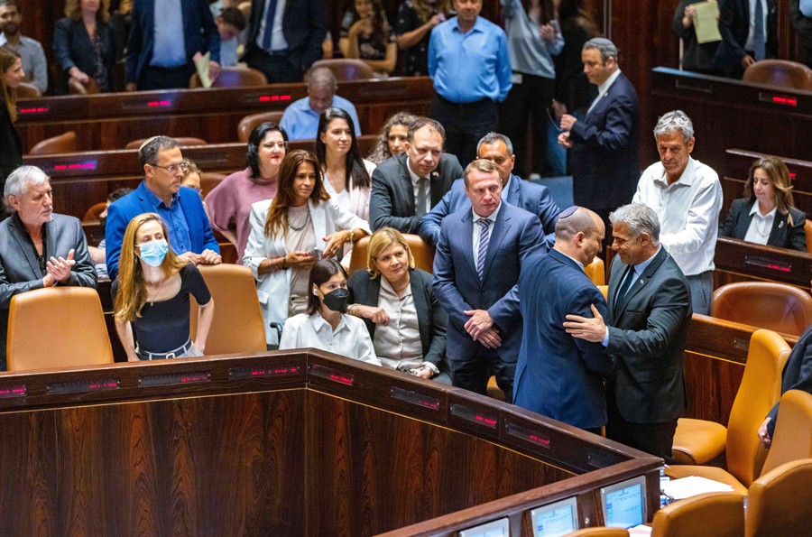以色列議會(huì)30日宣布議會(huì)全會(huì)最終通過(guò)解散議會(huì)的法案。總理貝內(nèi)特提前卸任,候任總理、外長(zhǎng)拉皮德于7月1日起擔(dān)任看守總理。兩人當(dāng)日舉行了簡(jiǎn)短的交接儀式。