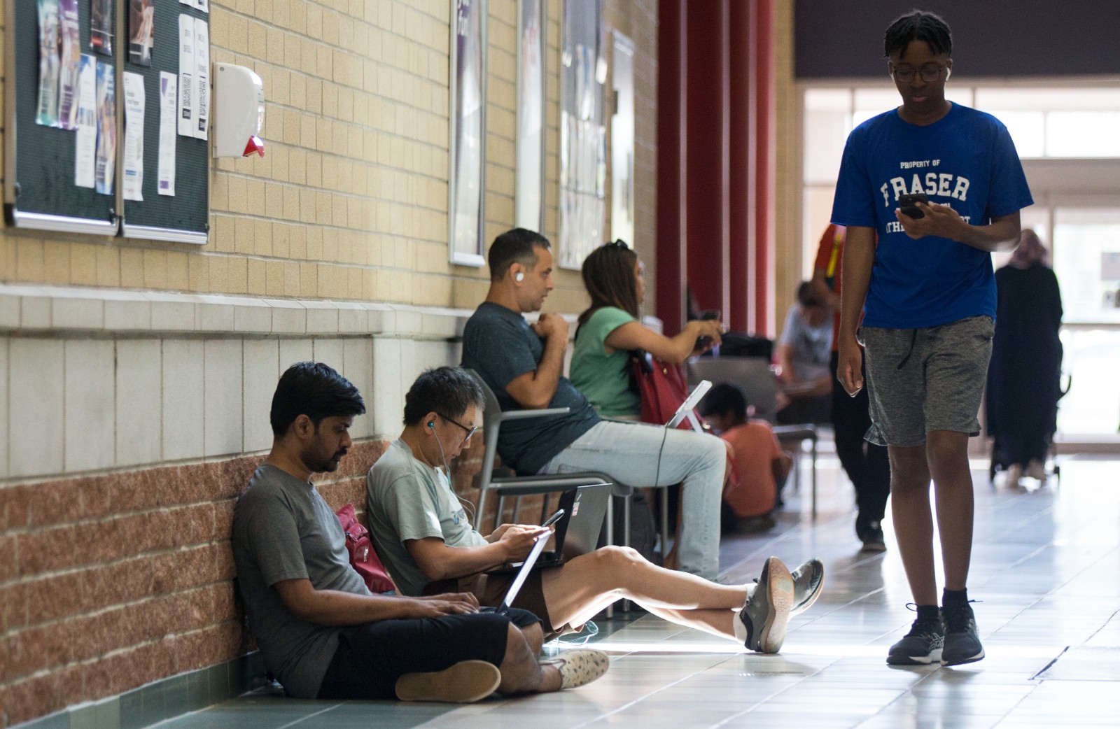 7月8日,人們在加拿大安大略省米西索加一處社區(qū)中心利用公共Wi-Fi上網(wǎng)。