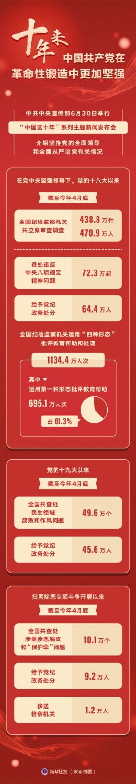 中共中央宣傳部6月30日舉行“中國(guó)這十年”系列主題新聞發(fā)布會(huì),介紹堅(jiān)持黨的全面領(lǐng)導(dǎo)和全面從嚴(yán)治黨有關(guān)情況。中央紀(jì)委國(guó)家監(jiān)委宣傳部部長(zhǎng)王建新表示,十年浴火淬煉,全面從嚴(yán)治黨政治引領(lǐng)和政治保障作用充分發(fā)揮,管黨治黨寬松軟狀況得到根本扭轉(zhuǎn),我們黨在革命性鍛造中更加堅(jiān)強(qiáng)。
