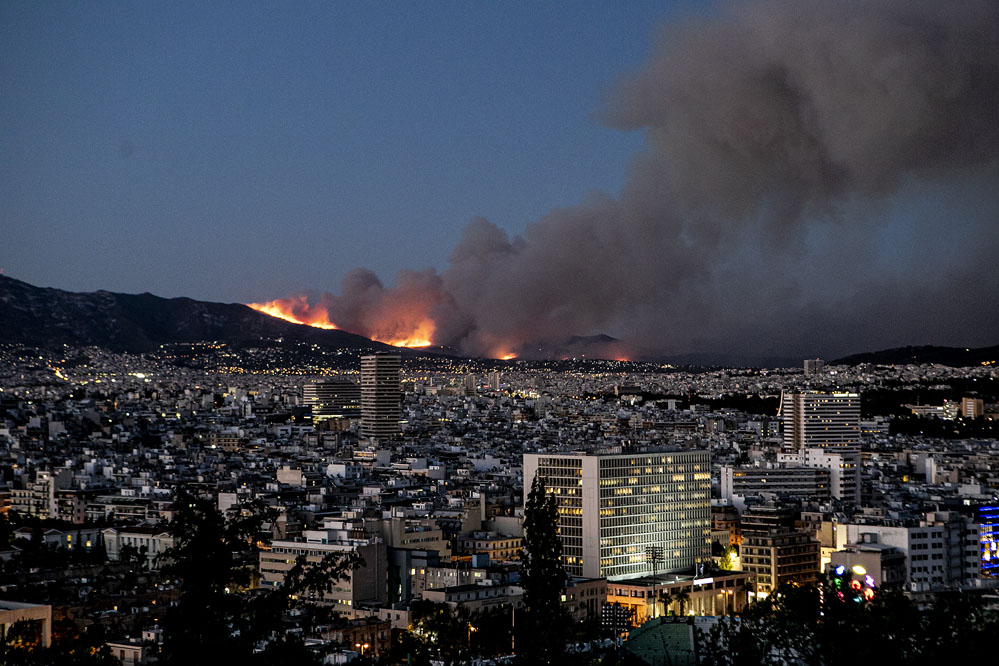 這是7月19日在希臘雅典拍攝的山火。